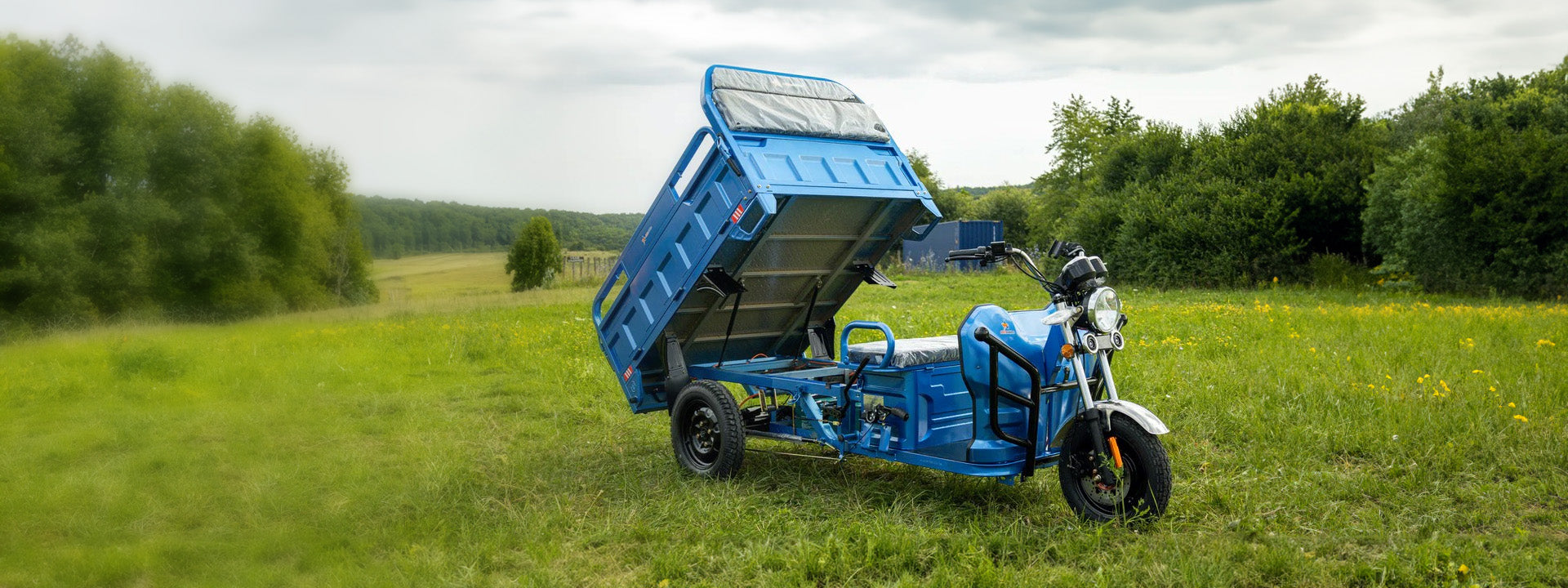 Tricicletă Electrică KUBA E-KAMYONET, Viteză 25km/h, Autonomie 70km, Cabină, Volan, Benă Basculabilă, Obloane Rabatabile